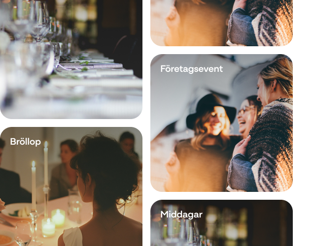 Oavsett om du planerar en glittrande gala, en bröllopsfest eller en mysig kväll med nära och kära, finns vi här för att göra det enkelt och stressfritt att skapa ett fantastiskt evenemang.