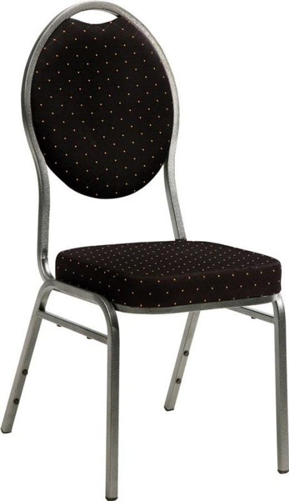 Stapelstolen Banquett har en god sittkomfort med sin breda sits och mjuka stoppning i svart tyg.