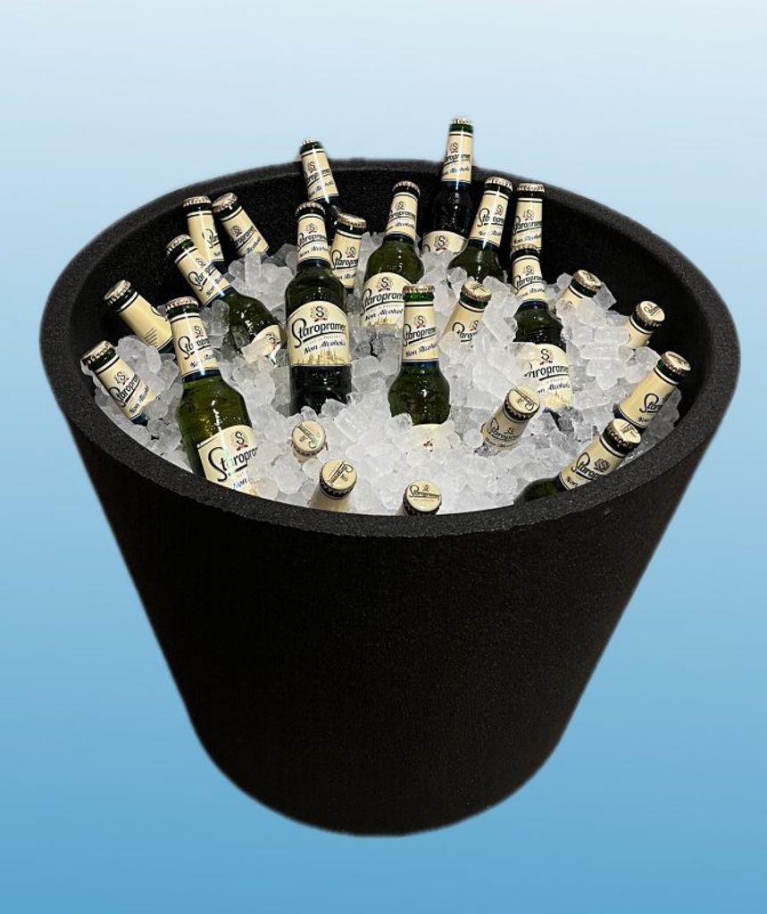 Stor istunna i isolerande material. Diameter: 60cm. Höjd: 50cm. Rymmer ca 40kg is. IS INGÅR EJ!