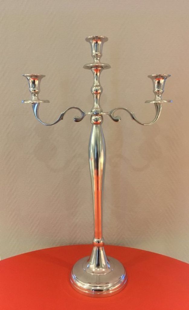 Ca 60 cm hög, med tre armar. Silverfinish.