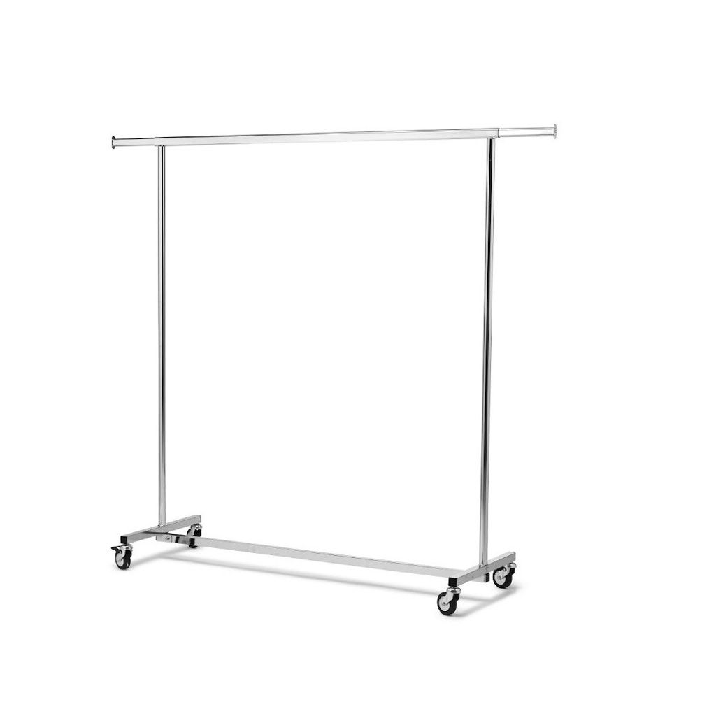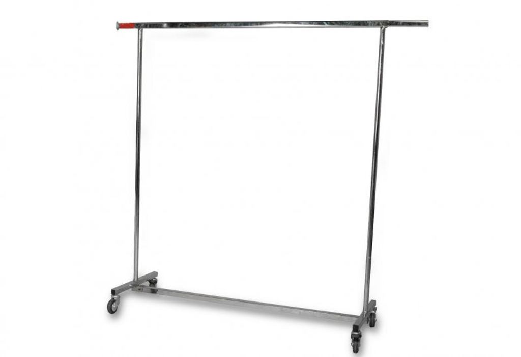 För max 50 galgar, metallställning, låsbara hjul. Hopfällbar, ca 150cm - utdragbar till 210 cm. Går att ställa höjd. - Obs. boka galgar separat.