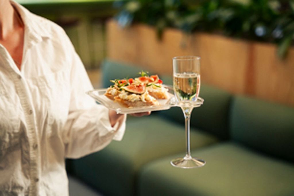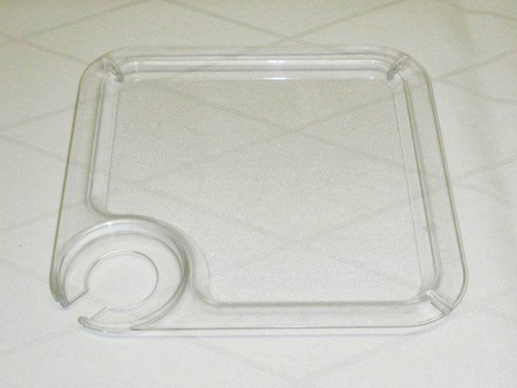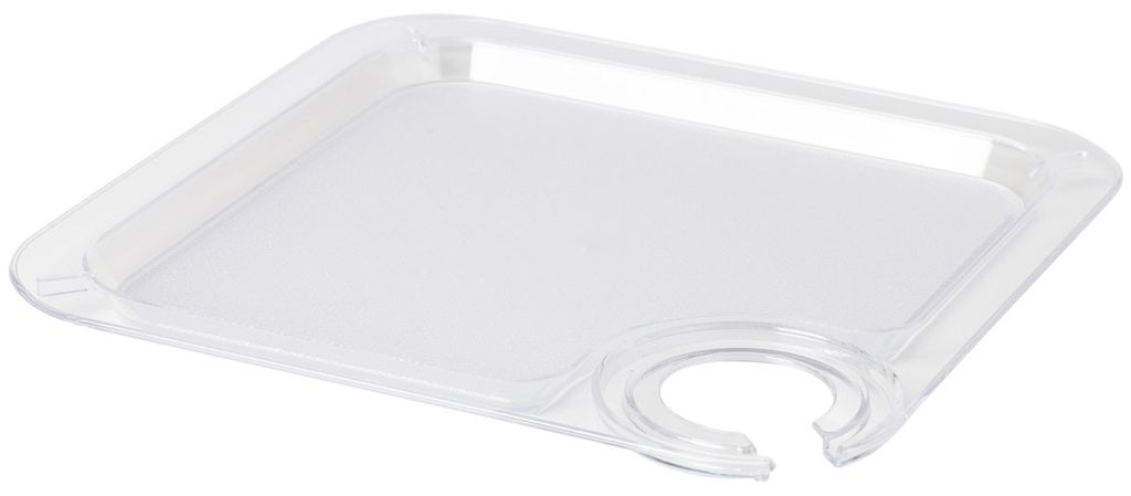 Mingelbricka i genomskinlig plast med hållare för vinglas eller champagneglas. Perfekt för minglet! 20x20cm.
