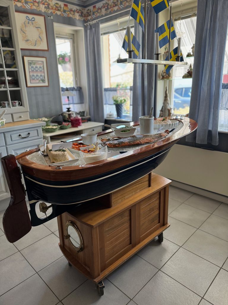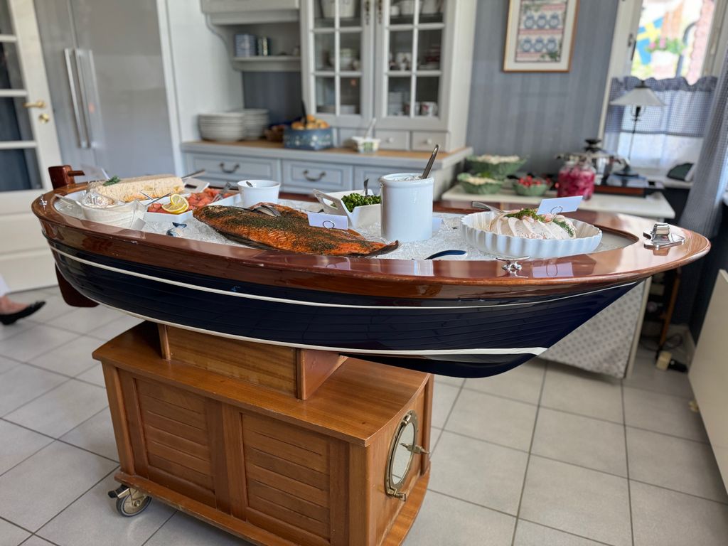 Ett exklusivt serveringsbord designat som en skärgårdsbåt. Perfekt för fisk, skaldjur, kallskuret och dessertbuffé men även till flaskor och snapsar. Går på hjul.