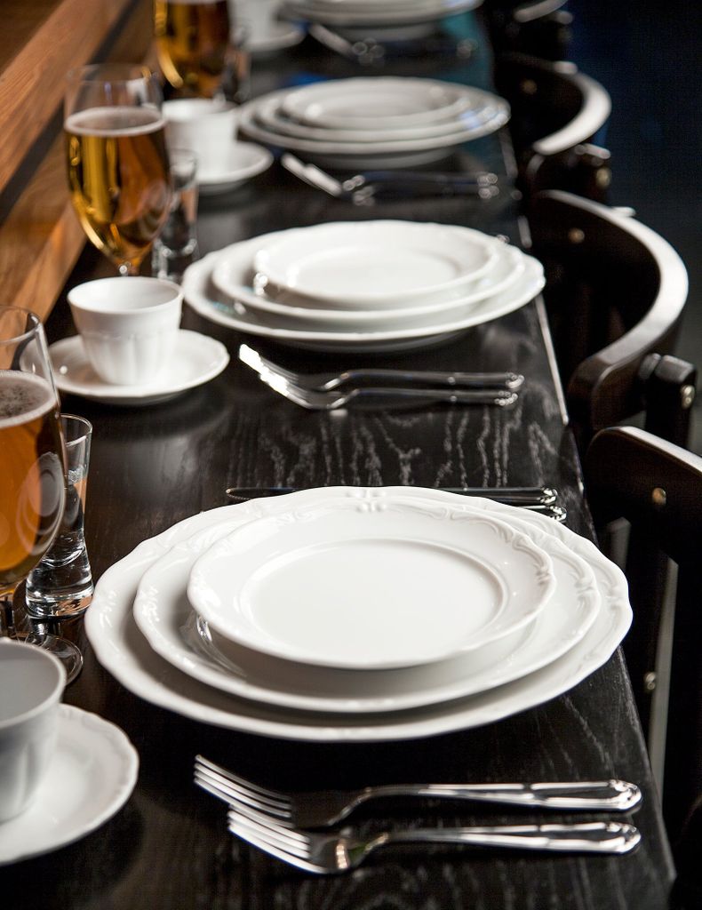 Ø 26cm. Tallrik till varmrätten, vanligaste tallriken. Med stilrent mönster.